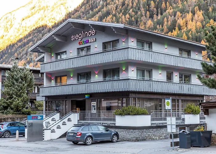 Sölden şehrindeki Gaislachalmkapelle'a 3 km mesafede bulunan Sieglinde Color Bed & Breakfast, buharlı hamam, tedavi odası, solaryum sunmaktadır. Bu otel Hochsoelden Kayak Teleferiği'a bitişik ve Giggijoch Kayak Teleferiği'a sadece 450 metre mesafededir.